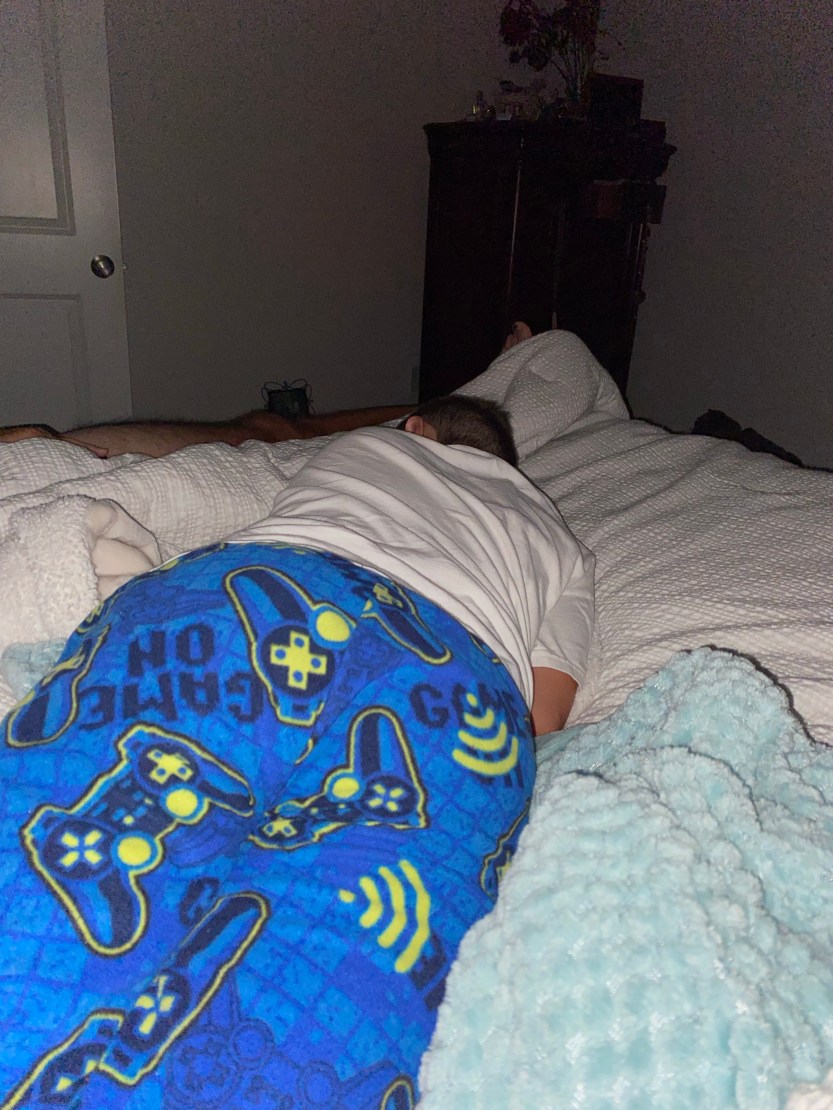 This mornings alarm seems to follow seconds later. As I try to pack pillows and blankets around him so he feels like I’m still there I notice my husbands spot is empty. Only to find the poor guy outside the bedroom asleep on the couch. Maybe he didn’t like Bones McGee? But at least my little one was still asleep.